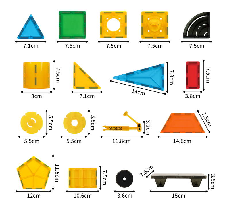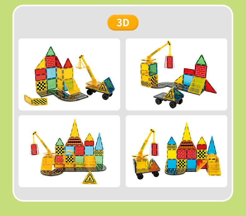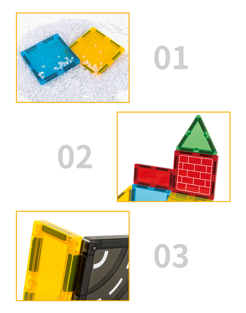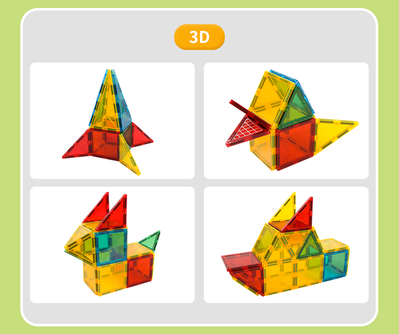 Die Elemente lassen sich dank starker Magnete leicht verbinden, sodass Kinder verschiedene Formen, Häuser, Türme, Burgen oder originelle Kunstwerke erschaffen können. Die Magnetbausteine verbinden Spaß, Kreativität und Ästhetik und fördern die Feinmotorik, Vorstellungskraft und den Sinn für Schönheit.