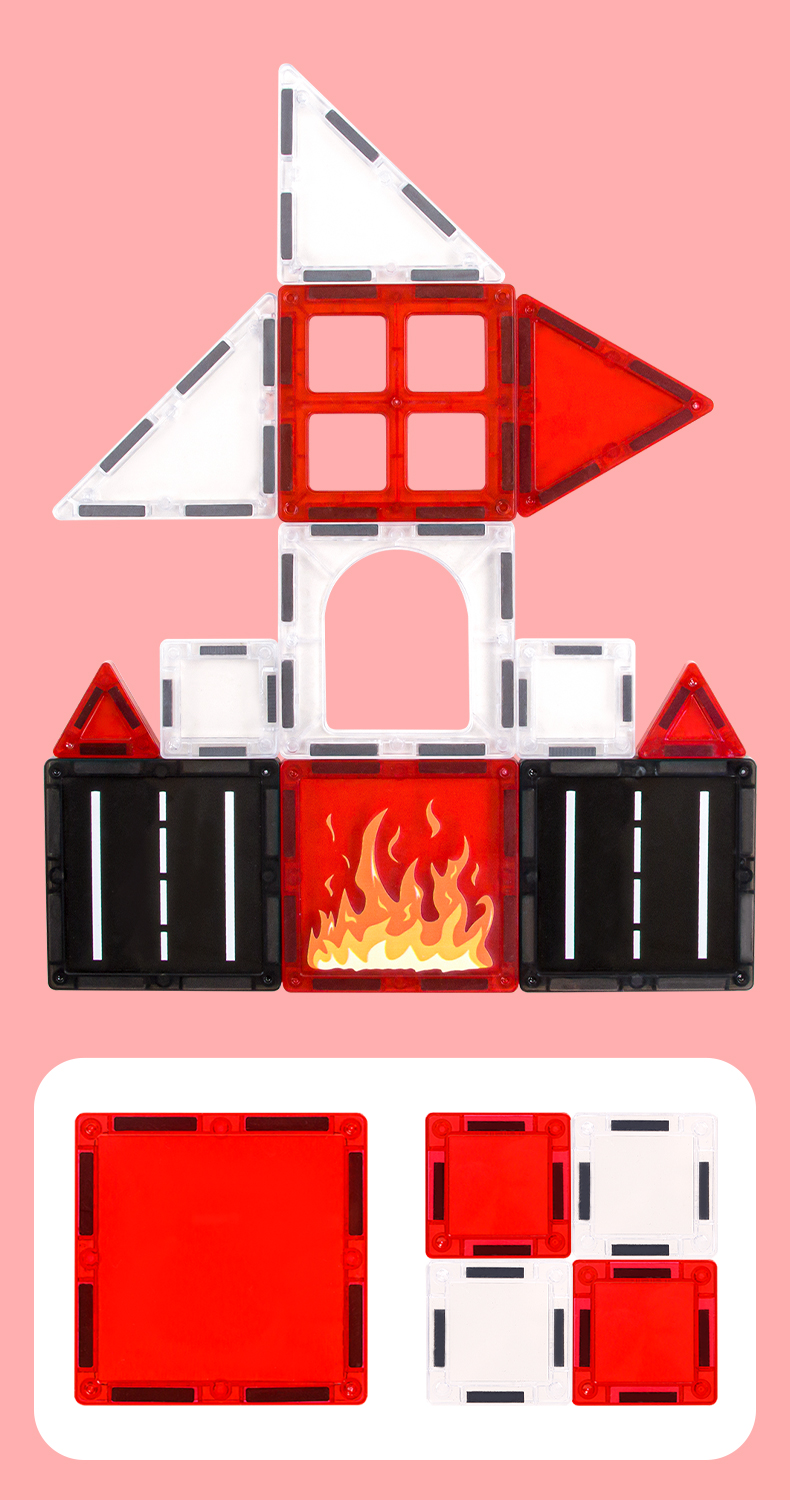 Die Elemente lassen sich dank starker Magnete leicht verbinden, sodass Kinder verschiedene Formen, Häuser, Türme, Burgen oder originelle Kunstwerke erschaffen können. Die Magnetbausteine verbinden Spaß, Kreativität und Ästhetik und fördern die Feinmotorik, Vorstellungskraft und den Sinn für Schönheit.