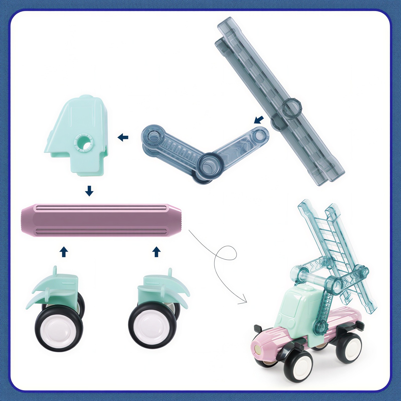Die Elemente lassen sich dank starker Magnete leicht verbinden, sodass Kinder verschiedene Formen, Häuser, Türme, Burgen oder originelle Kunstwerke erschaffen können. Die Magnetbausteine verbinden Spaß, Kreativität und Ästhetik und fördern die Feinmotorik, Vorstellungskraft und den Sinn für Schönheit.
