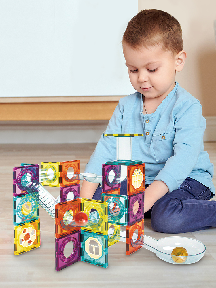 Die Elemente lassen sich dank starker Magnete leicht verbinden, sodass Kinder verschiedene Formen, Häuser, Türme, Burgen oder originelle Kunstwerke erschaffen können. Die Magnetbausteine verbinden Spaß, Kreativität und Ästhetik und fördern die Feinmotorik, Vorstellungskraft und den Sinn für Schönheit.